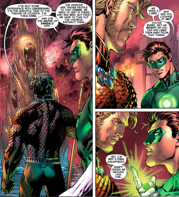 左が一枚目の表紙。あーあランタン。って思ってぺらぺらっとめくったら、別パターン表紙で場所を替えてまたランタンやられてたww 一枚目で許してあげてってちょっと思ったけどアクアマンかっこいいししょうがない(?)